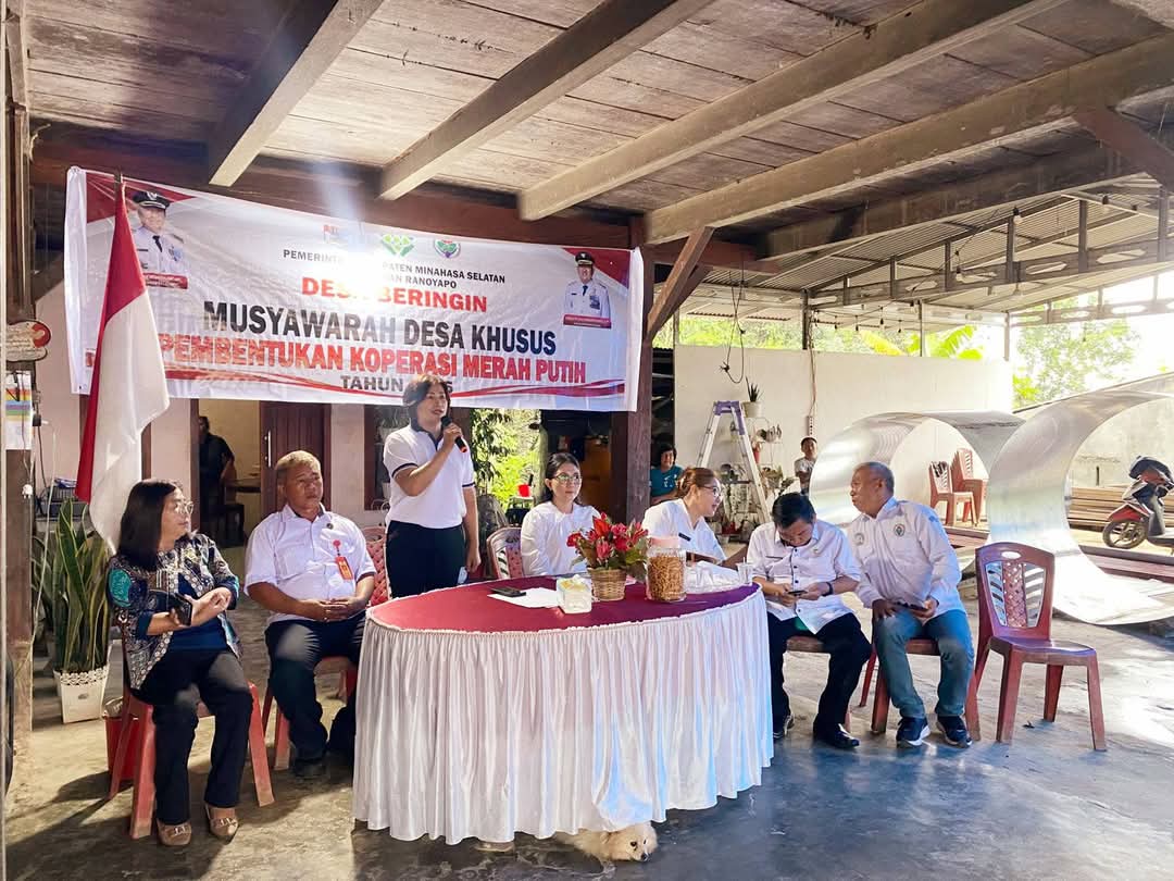 Pemerintah desa (Pemdes) Berimgin kecematan Ranoyapo kabupaten Minahasa Selatan (Minsel) menggelar musyawarah pembentukan Koperasi Desa Merah Putih di Kantor Hukum tua (Kumtua) Desa Beringin Pada Rabu (14/5/2025).