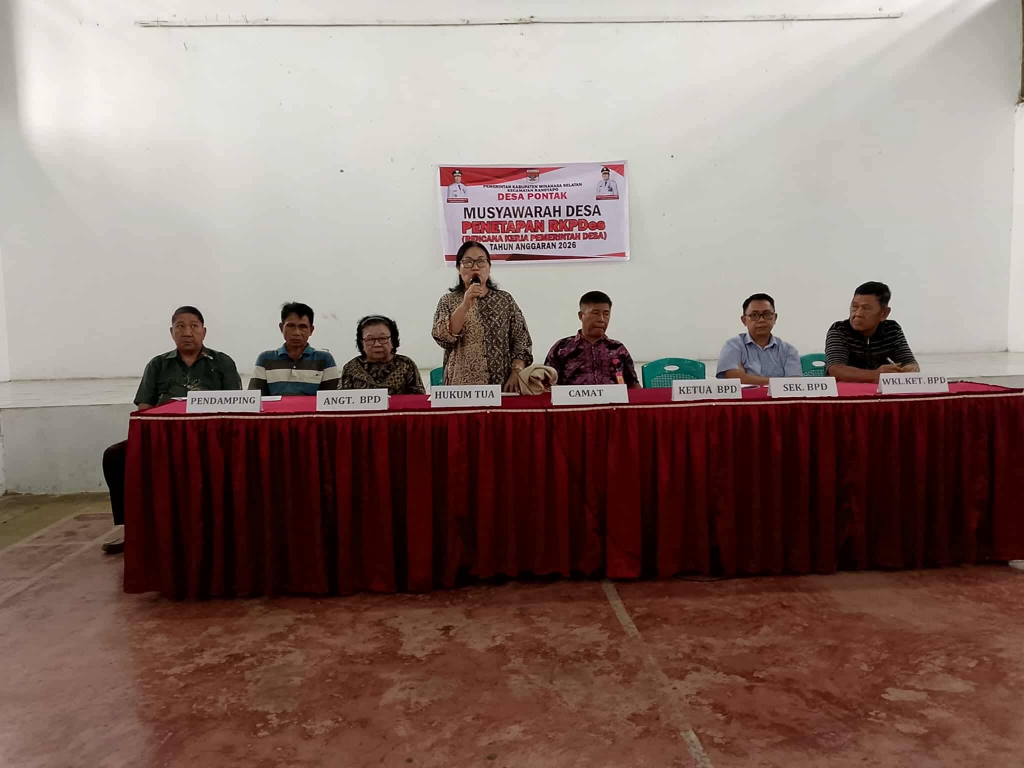 Pemerintah Desa Pontak Kecamatan Ranoyapo Kabupaten Minahasa Selatan (Minsel) melaksanakan Musyawarah Desa (Musdes) Rencana Kerja Pemerintah Desa (RKPDes) Tahun Anggaran 2026 pada Kamis (30/10/2025) bertempat di Aula Balai Pertemuan Umum (BPU) Desa Pontak.