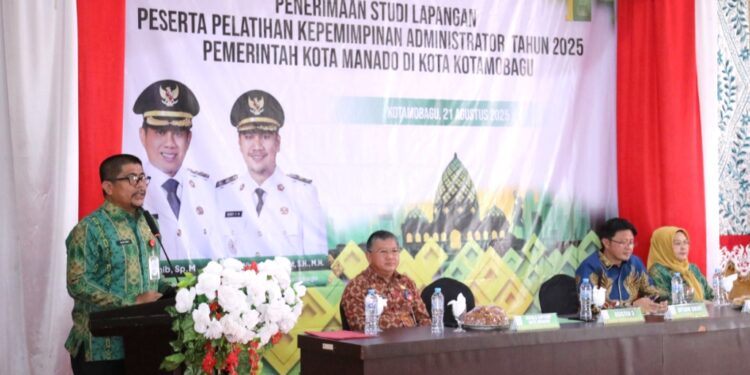 Kotamobagu, MSN – Wakil Wali Kota Kotamobagu, melalui Asisten III Pemerintah Kota Kotamobagu, Mochamad Agung Adati, menerima kunjungan studi lapangan peserta Pelatihan Kepemimpinan Administrator (PKA) Pemerintah Kota Manado. Kegiatan berlangsung di Aula Rumah Dinas Wali Kota Kotamobagu, Kamis (21/8/2025).