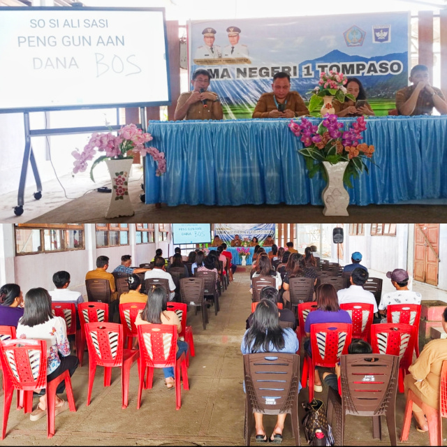 SMAN 1 Tompaso Lama menggelar rapat sosialisasi penggunaan Dana Bantuan Operasional Sekolah (BOS). Acara yang dihadiri ratusan orang tua dari 485 siswa ini juga menjadi sarana sekolah untuk menyampaikan sejumlah peraturan penting.